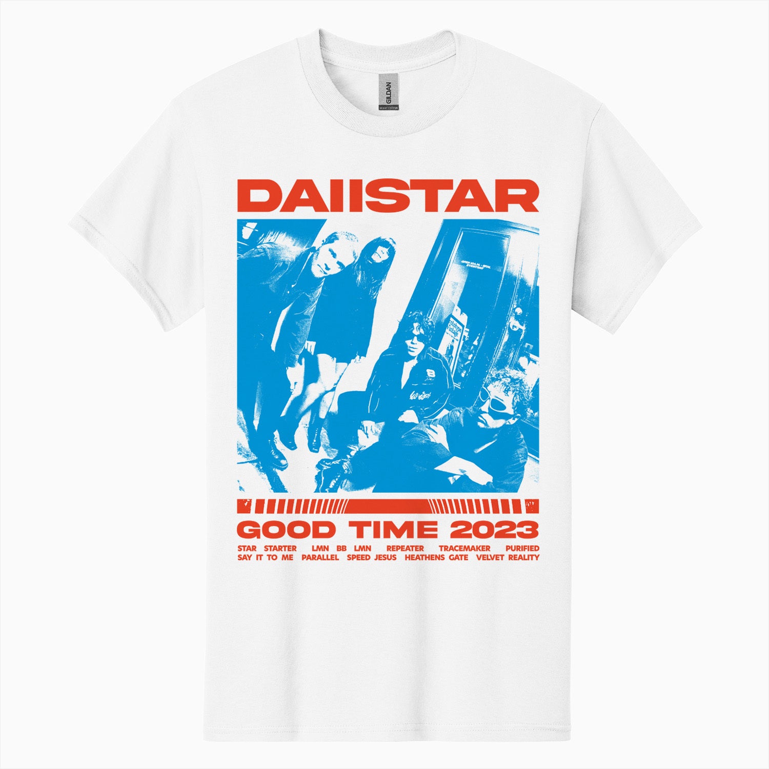 Official DAIISTAR merchandise. Screen-printed on white Gildan Heavy Cotton unisex short-sleeve t-shirts. Limited stock.