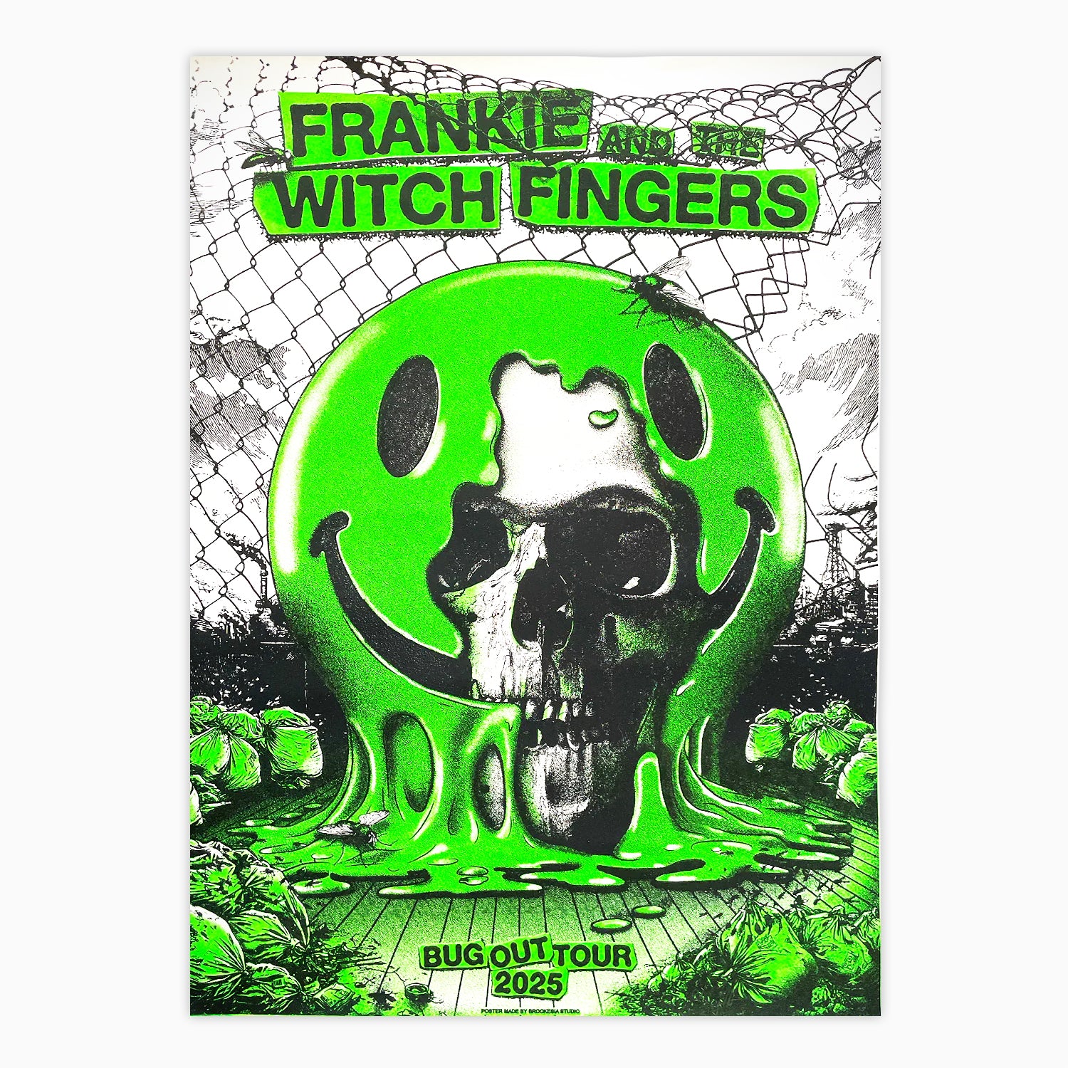 Frankie limited edition Bug Out Tour 2025 poster designed by Brookesia Studio for Frankie and the Witch Fingers, signed and numbered by the artist. FATWF logo designed by Jordan Warren.